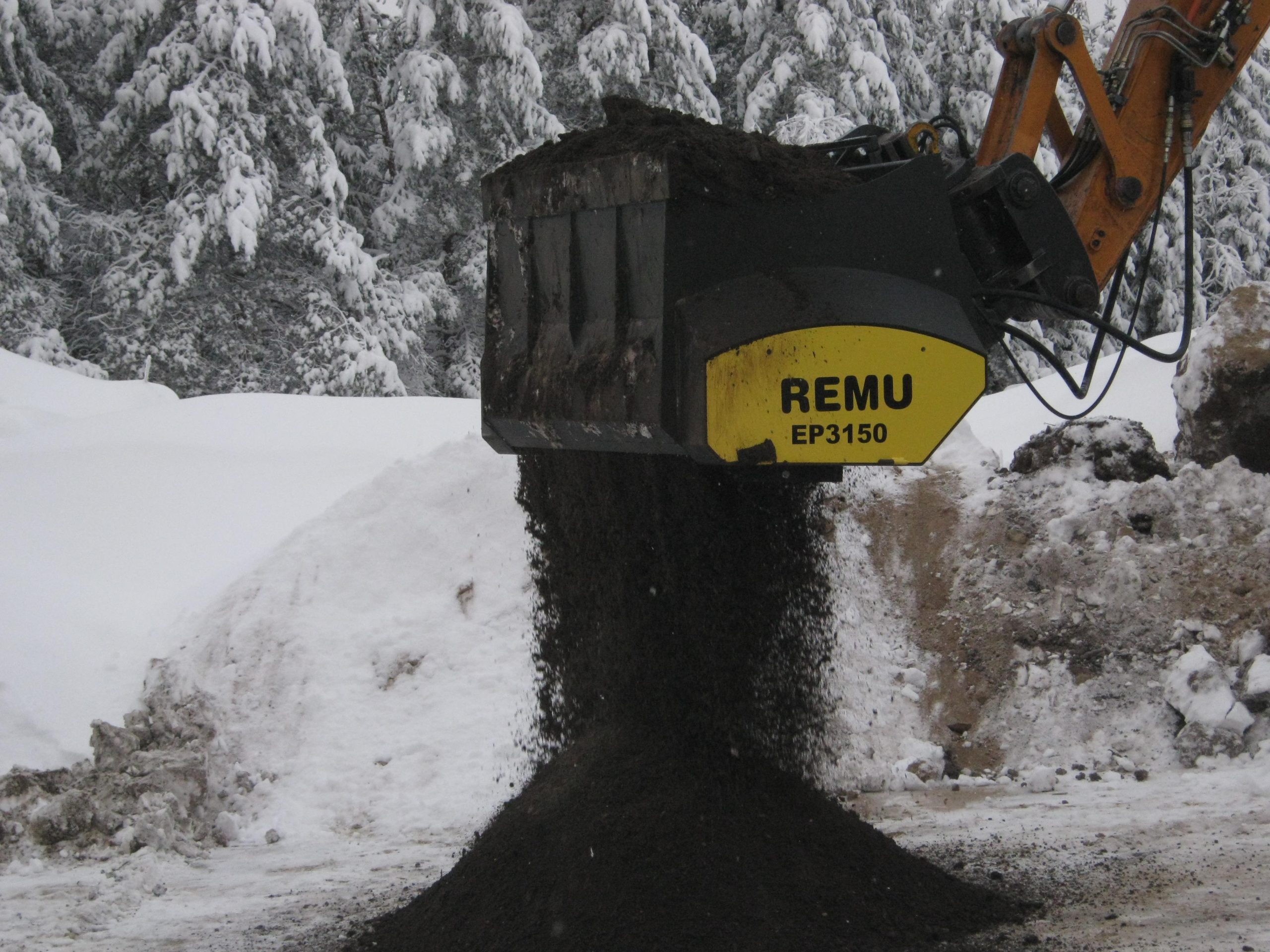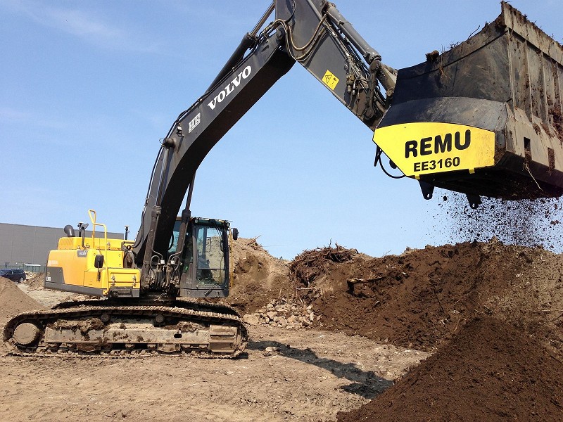 Fuktig jord og leire forårsaker ofte forsinkelser i byggearbeidet. For å holde arbeidet i gang kan man bruke sorteringsskuffen til å blande kalk i vanskelig jordmateriale for å bedre jordstrukturen.