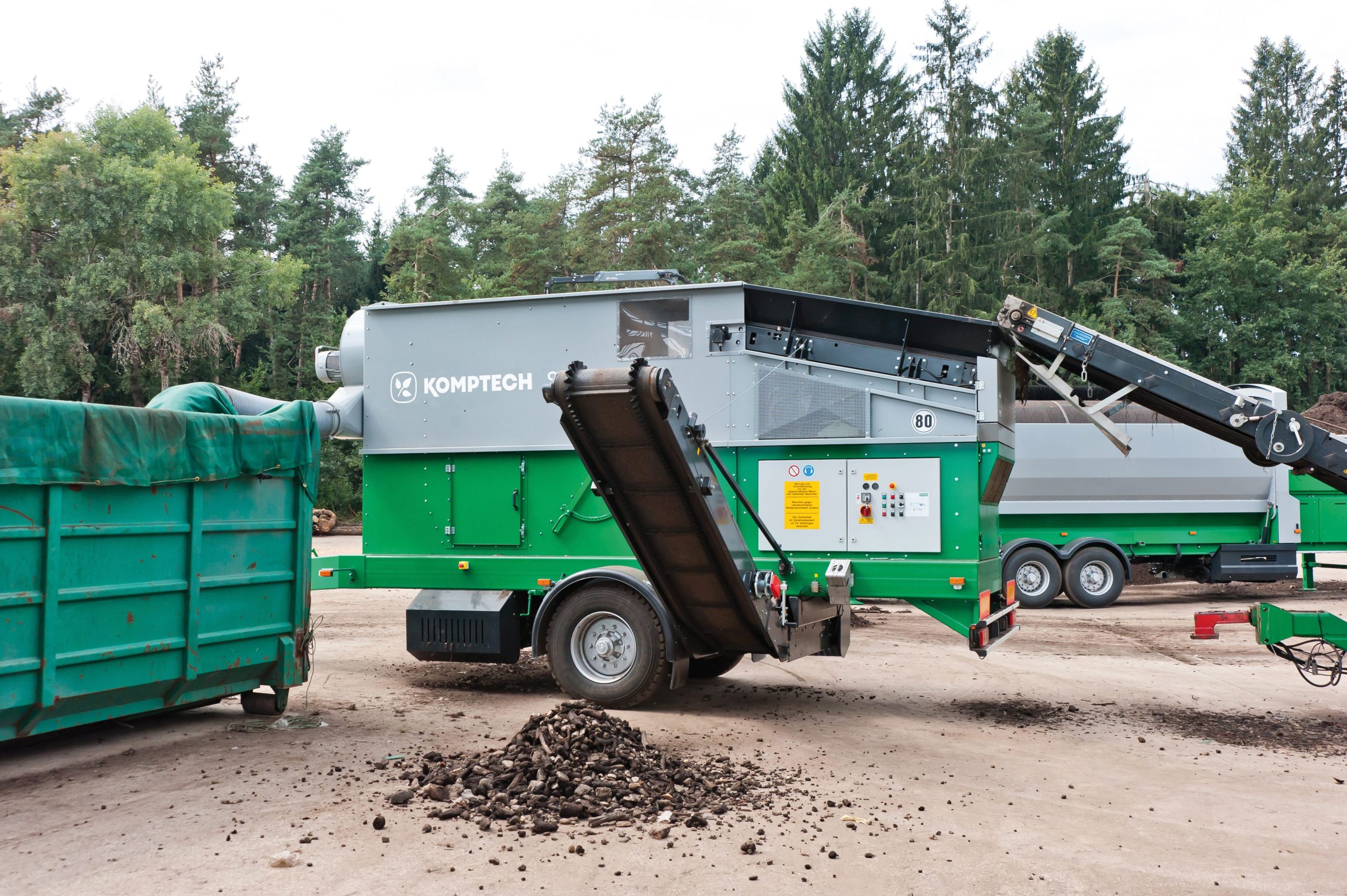 I ekspansjonskammeret skiller et system bestående av trykk- og sugevifter materialet i en steinfraksjon og i en renset brukbar fraksjon. To transportører frakter materialene ut på motsatte sider.