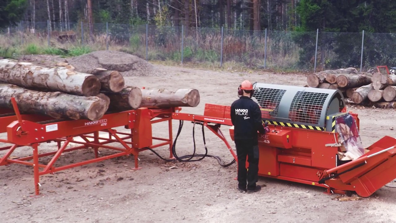 Hakki Pilke 43 Pro er en helt unik vedmaskin anbefalt av profesjonelle brukere. Maskinens produktivitet har blitt forbedret med HakkiSplit™ -kløyvemekanismen samt nye funksjoner som sikrer uavbrutt materialflyt – en hydraulisk stokkeholder, hydraulisk vedlengde måler og kubbelandingsplater. Hvis maskinen hovedsakelig brukes til å behandle store stokker eller produsere ved av betydelig størrelse, kan kjøpere gå for en bredere transportør.