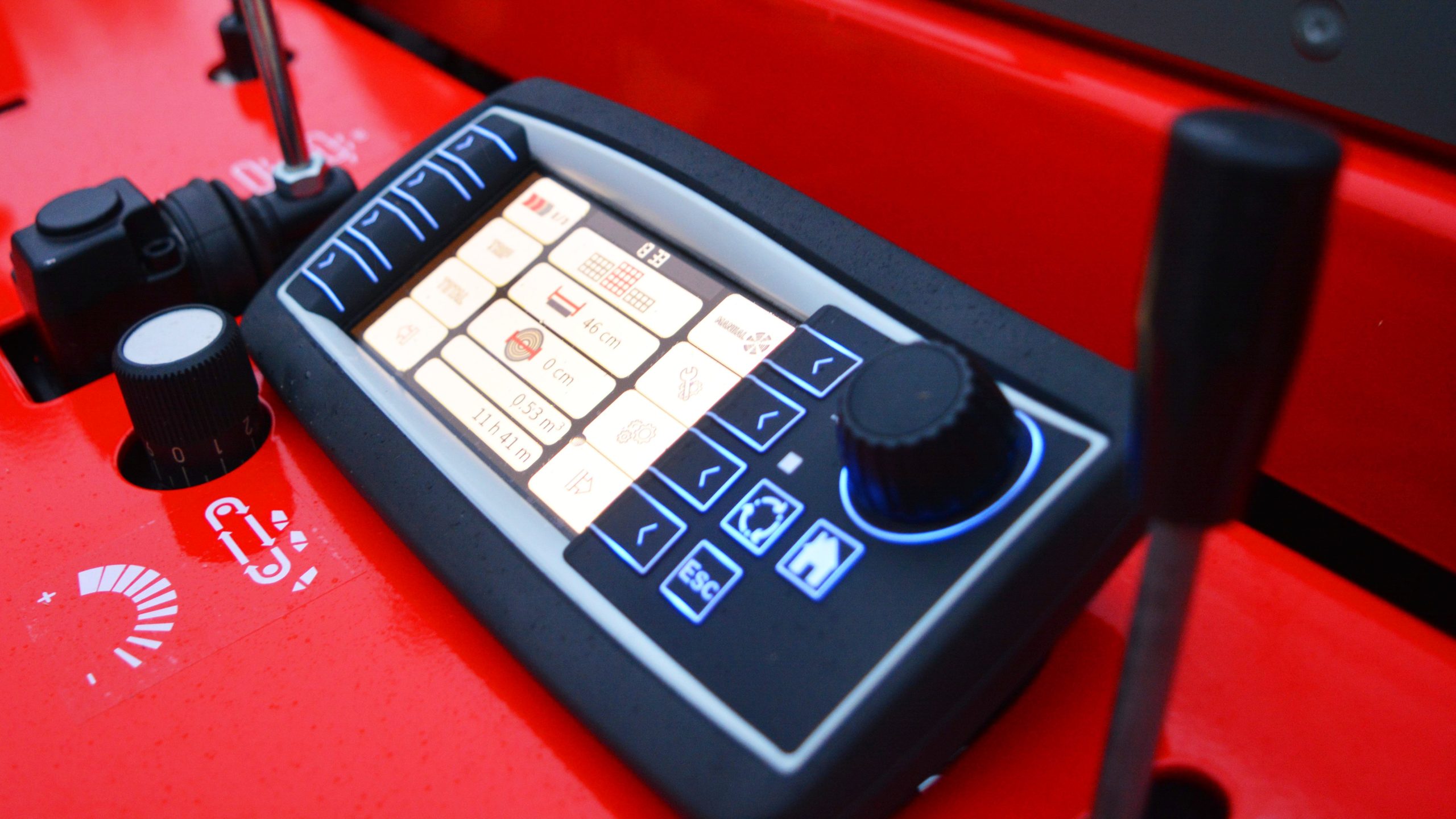 Den elektriske joysticken styrer innmating, kapping, justering av kløyvekniv og sagkjede